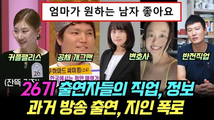 먼저, 26기 참가자들의 직업을 살펴보겠습니다. 이들은 각기 다른 분야에서 활동하고 있으며, 그들의 직업은 그들의 성격과 가치관을 잘 보여줍니다. 예를 들어,