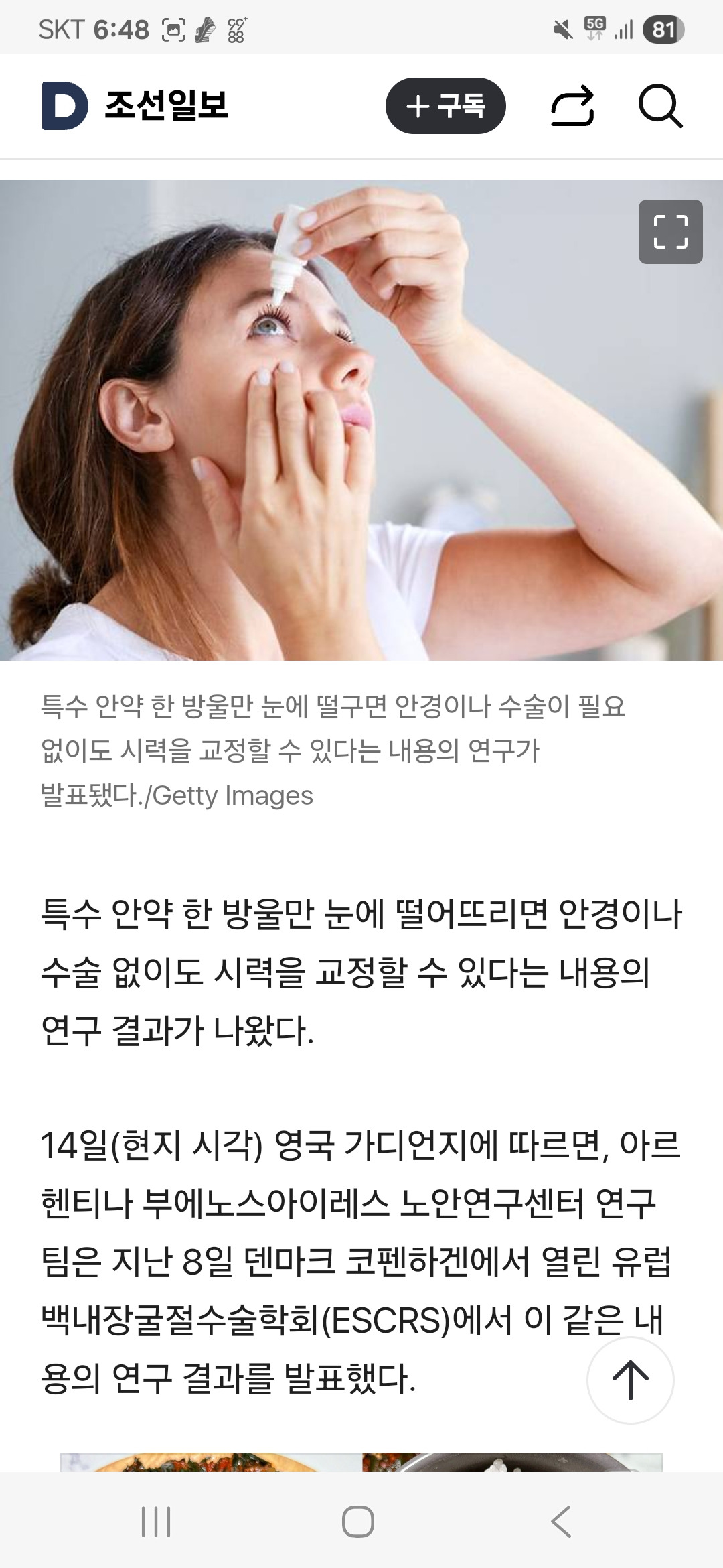 [1] 조선일보 - “안약 한 방울로 노안 시력 교정”... 안경 없는 시대 오나 (https://www.chosun.com/economy/science/2025/09/15/SSMZNBGYKZG7NCIN47OD5BEXCM/)