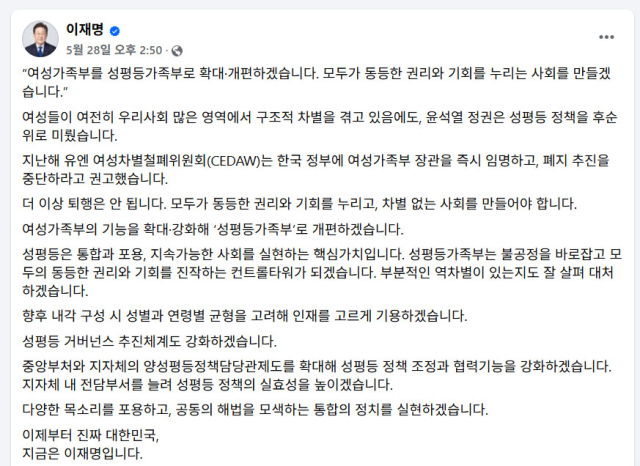 [2] Daum - "여가부 확대하겠다"는 李대통령, 성평등 정부 만들 수 있을까 (https://v.daum.net/v/20250606173309911)