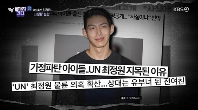 [1] 티스토리 - 아이돌 출신 40대 배우 UN 최정원 불륜 논란 정리 - 고.래 정보바다 (https://go-4ward.tistory.com/entry/%EC%95%84%EC%9D%B4%EB%8F%8C-%EC%B6%9C%EC%8B%A0-40%EB%8C%80-%EB%B0%B0%EC%9A%B0-UN-%EC%B5%9C%EC%A0%95%EC%9B%90-%EB%B6%88%EB%A5%9C-%EB%85%BC%EB%9E%80-%EC%A0%95%EB%A6%AC)